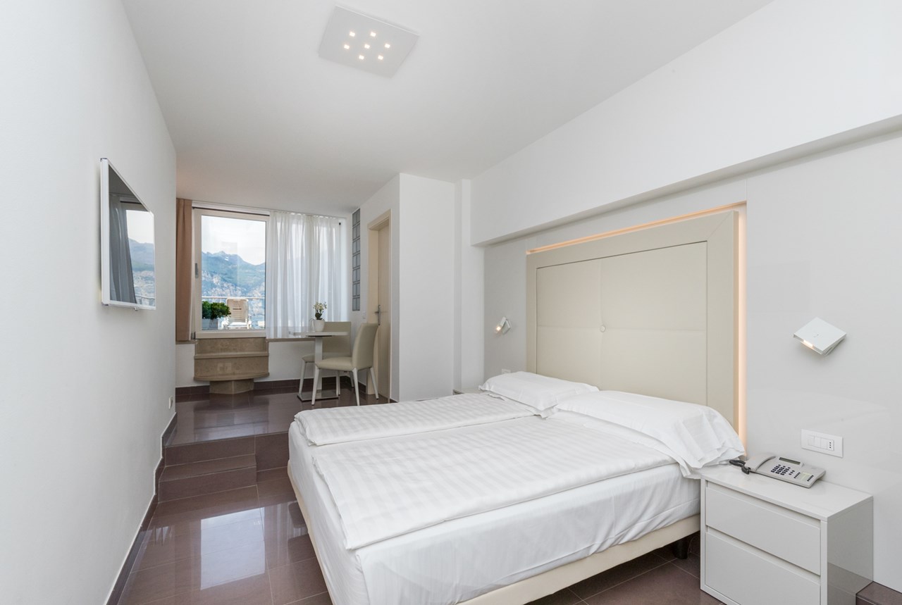 Zimmerausstattung: Seeblick, Terrasse, Telefon, Flachbild SAT-TV, Safe, Klimaanlage, Schreibtisch, Heizung, Fliesen, Minibar, Schrank, Badezimmer, WC, Dusche, Bidet, Haartrockner, Pflegeprodukte.